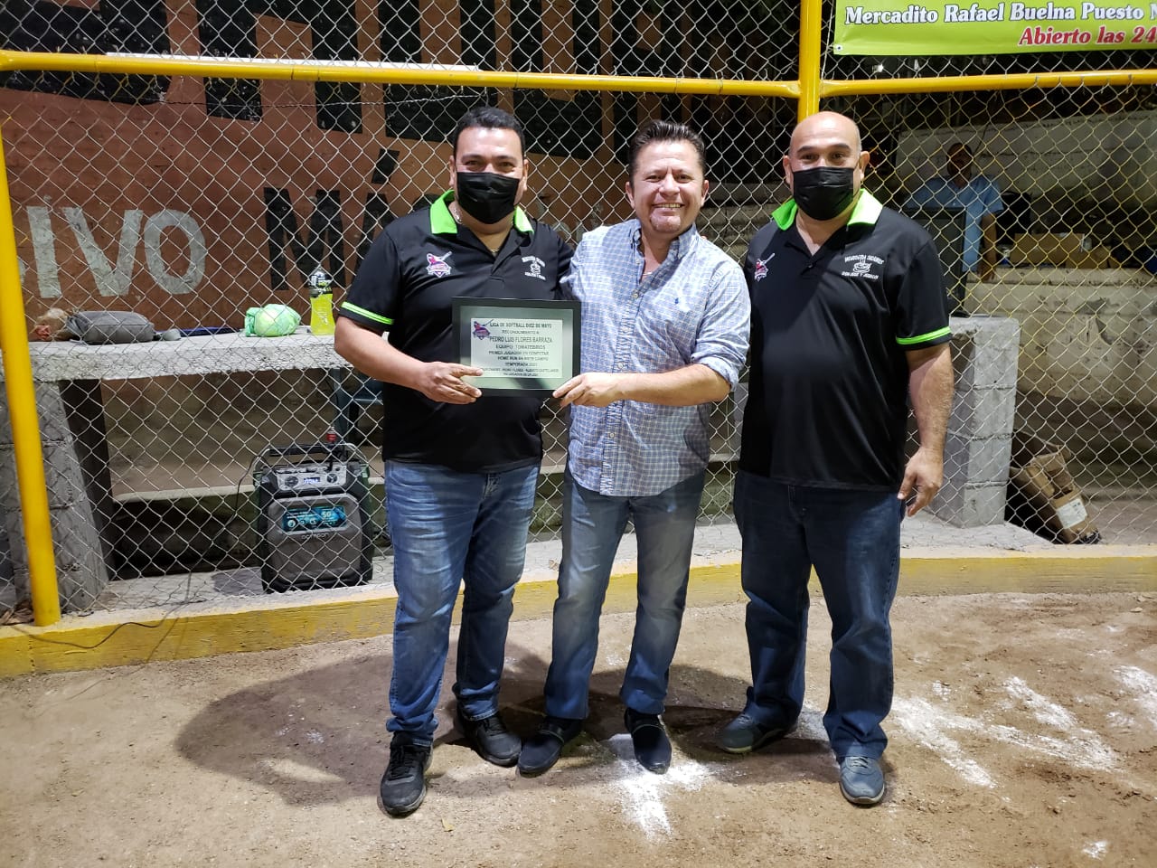 Al director del IMDEC, le dieron el honor de premiar a lo mejor de la categoría Bola Puesta, entregando los galardones de Mejor Pitcher y Bateo a los peloteros Carlos Rico y Carlos Flores, así como también entregó sendos reconocimientos a Sergio García, Mario Ramos y Pedro Barraza por su perseverancia en ésta Liga 10 de Mayo.